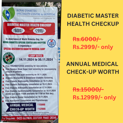 Coimbatore, November 2024 – In observance of World Diabetes Day, Kovai Diabetes Speciality Centre & Hospital is hosting a special Diabetic Medical Camp from 14th to 30th November 2024, offering exclusive discounts and free consultations to encourage proactive diabetes management.