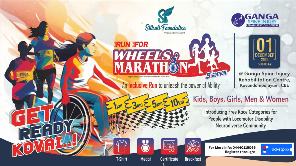 Join us in celebrating ability and inclusion—a powerful event brought to you by Sittruli Foundation & Ganga Hospitals. 🏃♂️🦽 Let’s make a difference together! Marathon Details: 🗓 Date: Dec 1, 2024 (Sunday) 🕠 Time: 5:30 AM 📍 Venue: Ganga Spine Injury Rehabilitation Centre, Coimbatore Be part of the change! 🌟