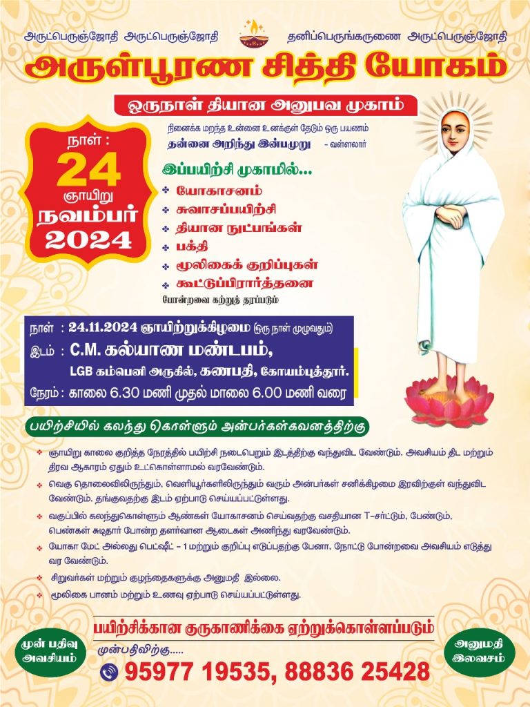 Venue: C.M. Kalyana Mandapam, near LGB Company, Ganapathy, Coimbatore